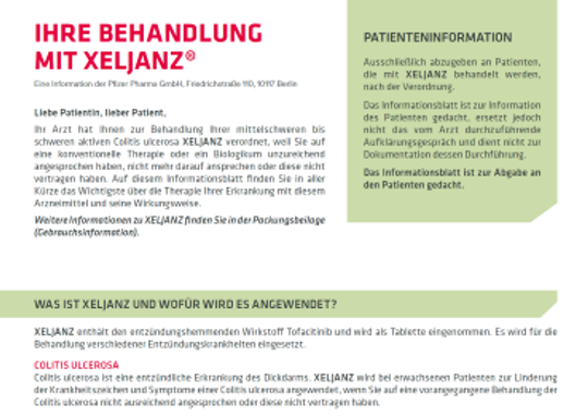 Die vorliegende Webseite wurde erstellt für Patient:innen mit Colitis ulcerosa, denen von Ihrem Arzt oder Ihrer Ärztin XELJANZ® verordnet wurde.